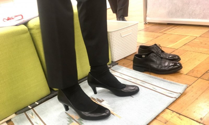 履いた瞬間、親ゆびと小ゆびが中央へ詰まる感覚があり女性はこの状態で1日を過ごしているのか!と驚いたのと同時に、外反母趾など、足の悩みが多くなるのにも納得でした。