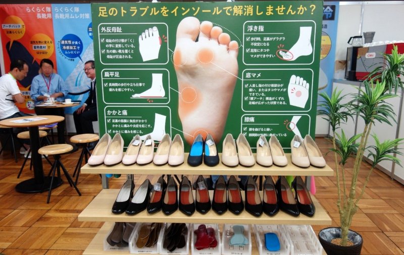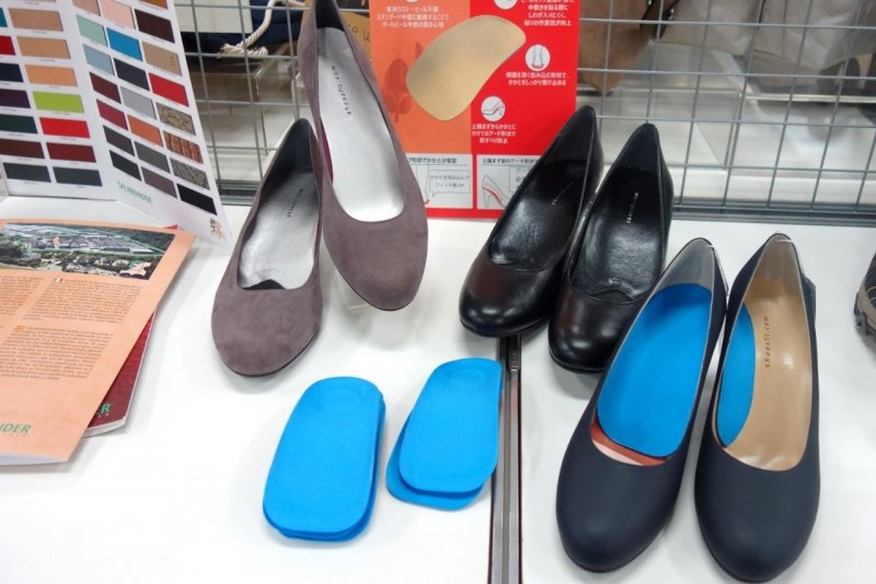 実際にお客様にインソールやパッドを入れたパンプスと、入れていないパンプスを試し履きしていただき、違いを体験してもらいました。