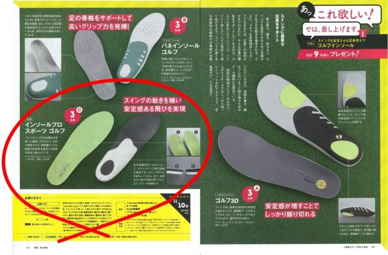 スイングを安定させるゴルフインソールがピックアップされています。