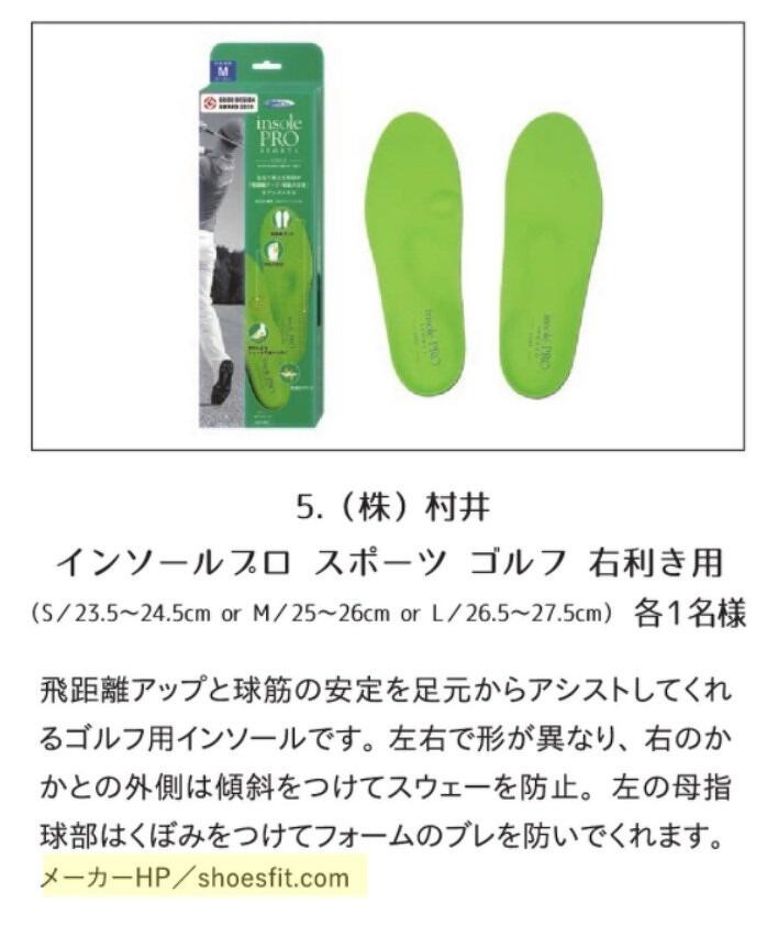 誌面では、「飛距離アップと球筋の安定を足元からアシストしてくれるゴルフ用インソール」